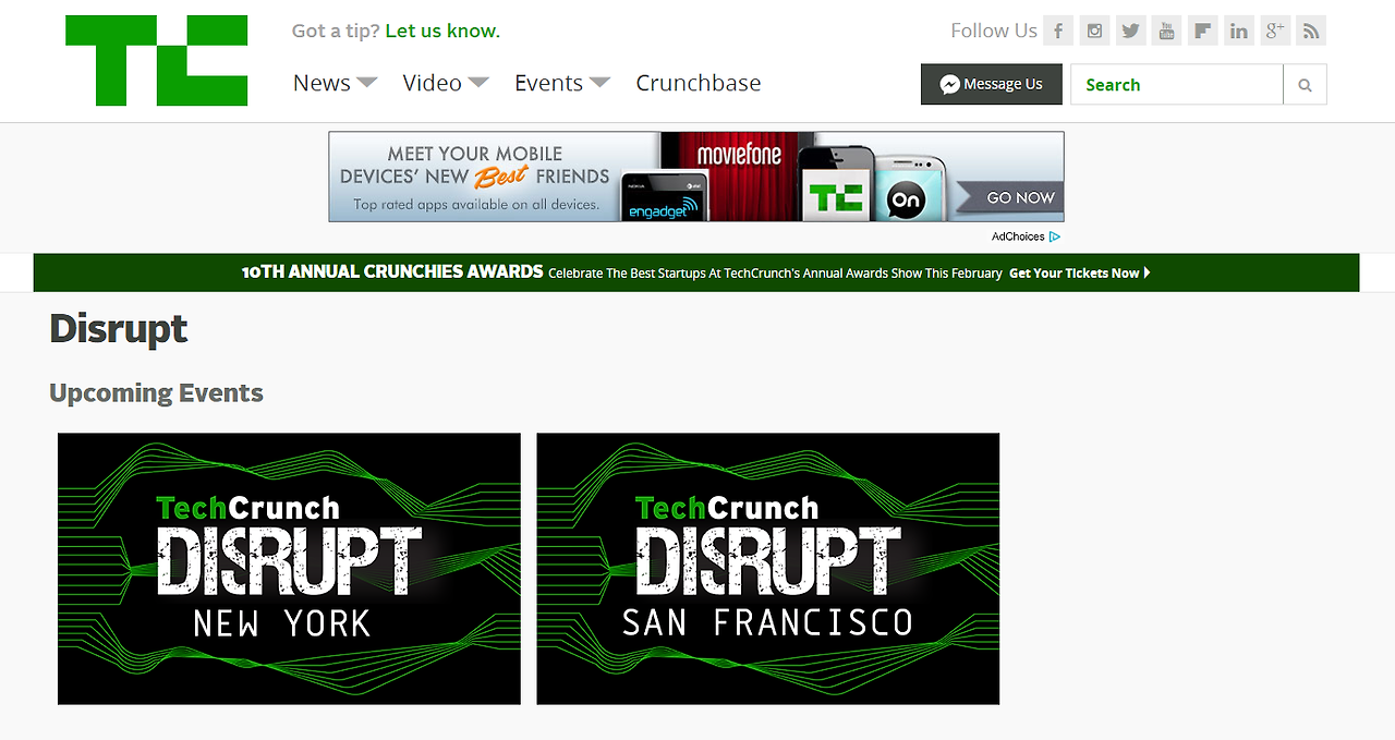 테크크런치에서 진행하는 행사인 테크크런치 디스럽트는 전세계 스타트업들의 경연장이 되어버렸다.