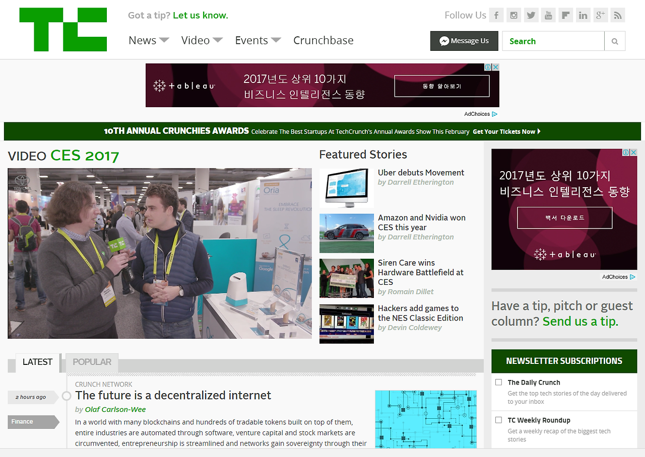 마인크래프트를 연상케하는 Tech Crunch의 BI도 이젠 익숙하다.