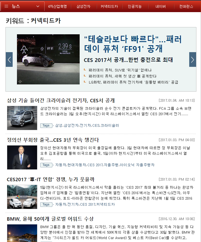추천서비스 : 키워드 메뉴 (ex) 커넥티드카, 인공지능