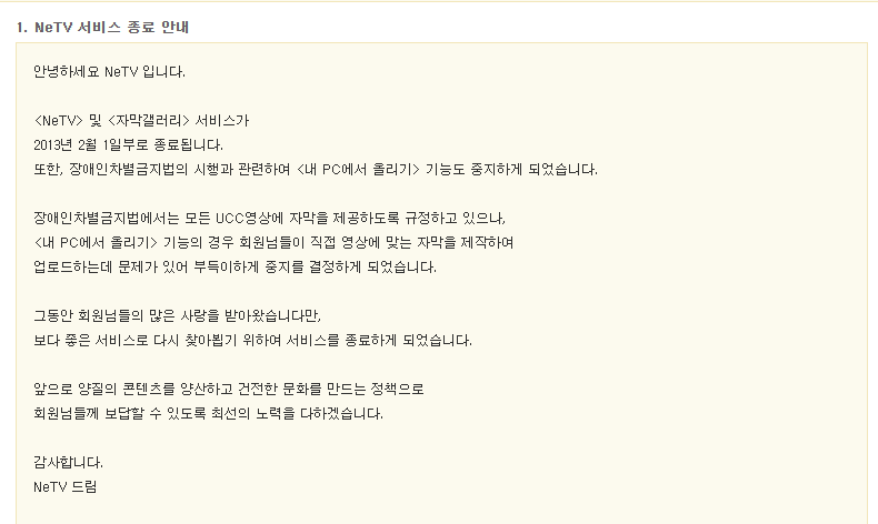 2013년 2월1일. SBSi의 UCC 생태계 조성 실험도 7년만에 막을 내리게 된다.