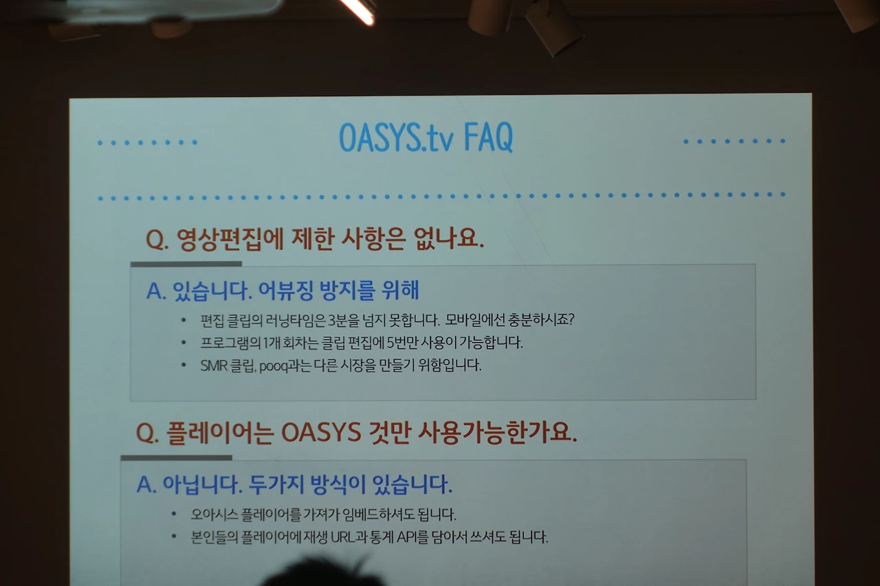 숏클립 유통구조를 성공적으로 만들었던 SMR의 성공뒤에 네이버, 카카오 등의 포탈사이트와 곰TV가 기여했듯이 2차 저작물의 가공이라는 엉킨 실타래를 OASYS.tv가 어떻게 풀지 기대해본다.