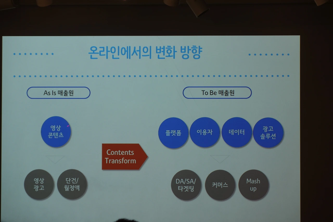 온라인에서의 변화도 기존 영상콘텐츠 중심에서 플랫폼,이용자,데이터,광고솔루션으로 다변화된다.