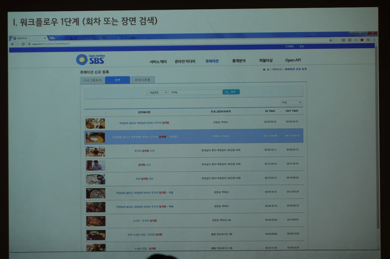 현재까지 구축된 OASYS.tv 영상의 메타정보들 (예시임을 감안)