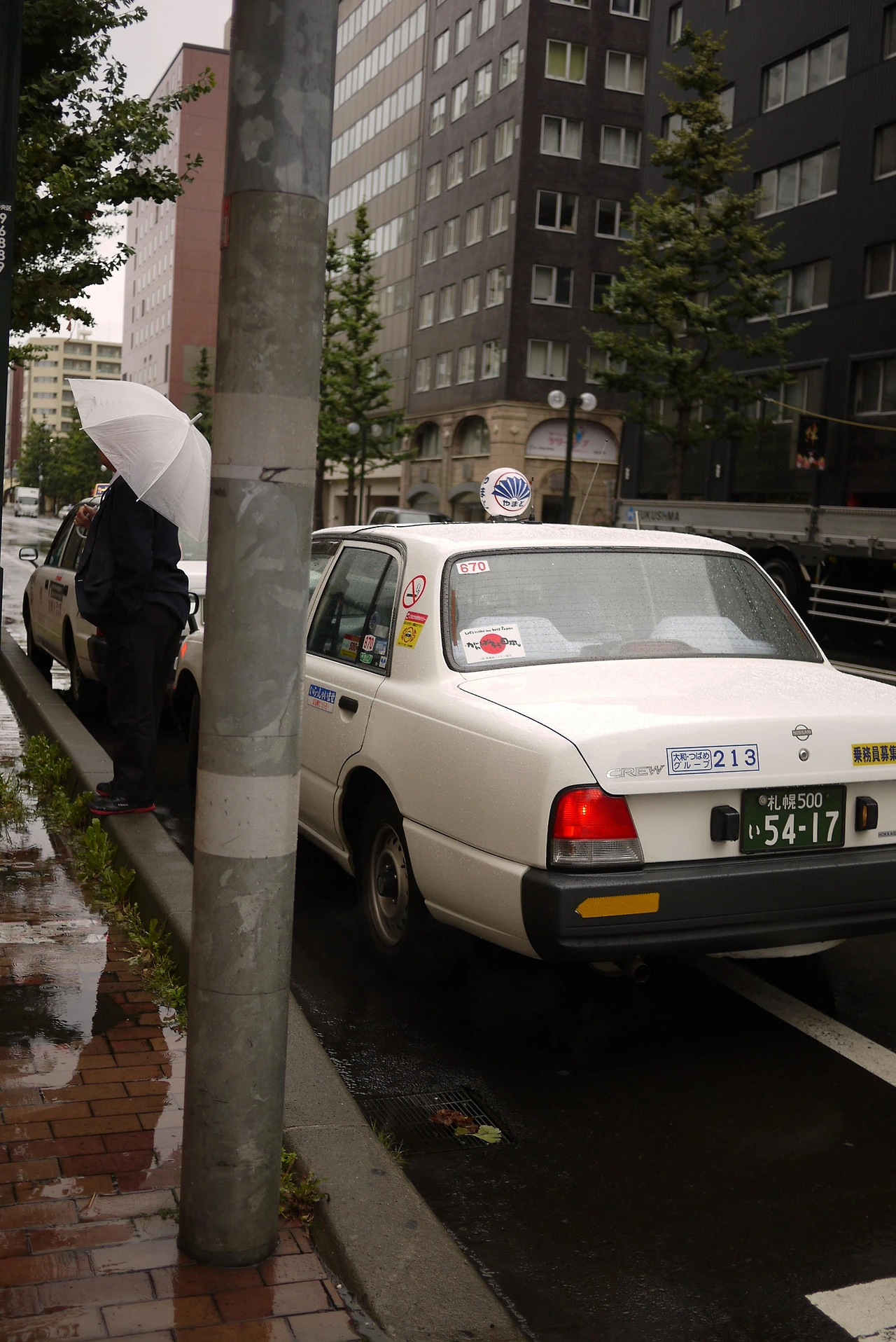 비오는 날 양복을 입고, 나이키 운동화를 멋드러지게 신은 택시기사 아저씨가 손님을 기다린다.