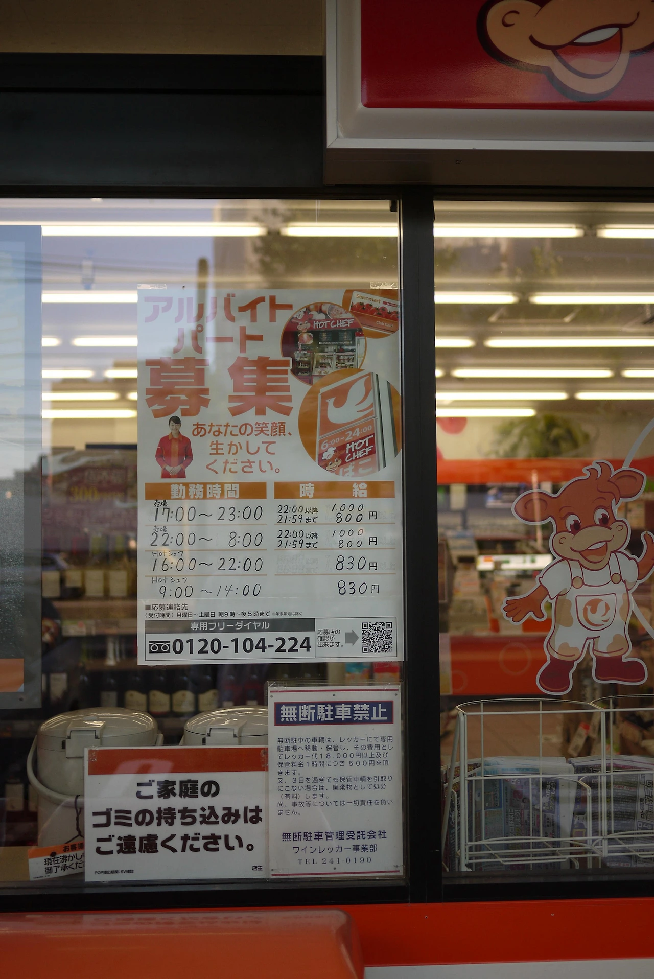'프리터' 채용공고. Seicon이라는 편의점체인에서는 조리하는 Hot Chef 를 별도로 모집하고 있다.