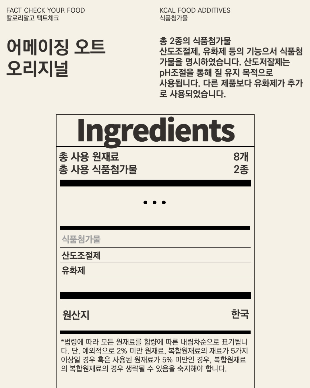 어메이징 오트 오리지널에 명시된 식품첨가물 개수는 2종류입니다.