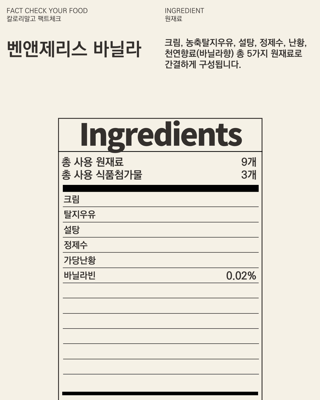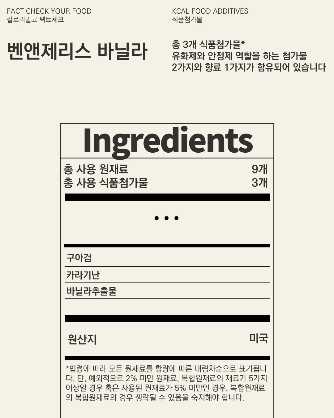 벤앤제리스, 바닐라 아이스크림 파인트에 명시된 식품첨가물 개수는 3가지입니다.