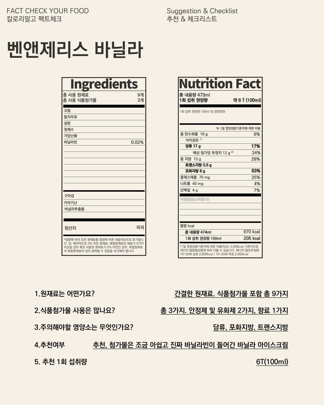 벤앤제리스, 바닐라 아이스크림 파인트에서 주의해야 하는 것은 당류, 포화지방, 트랜스지방입니다.