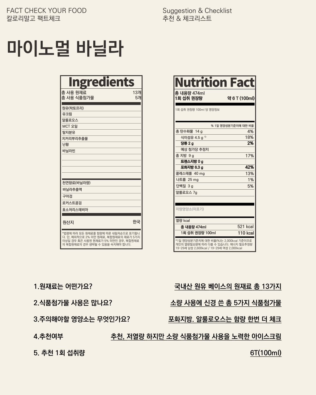 제품 및 브랜드명 : 마이노멀, 바닐라 아이스크림