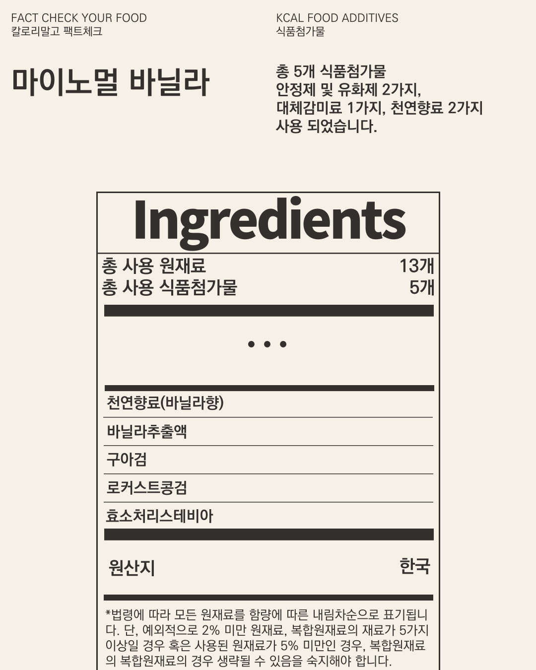 마이노멀 바닐라 아이스크림에 명시된 식품첨가물 개수는 5가지입니다.