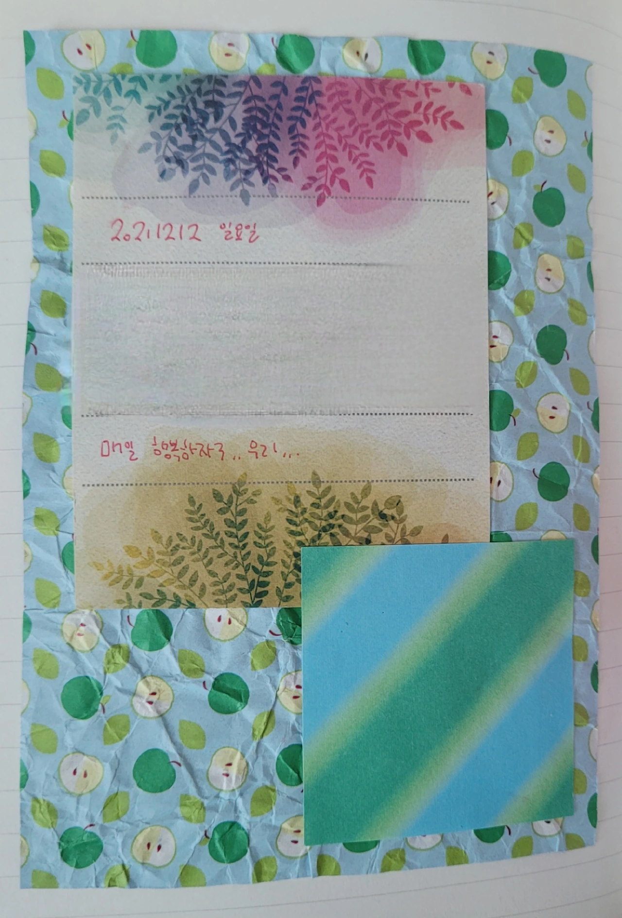 어차피 나만 쓰고 나만 보는 일기, 어쩌다 보니 말을 건네게 되었고, 나는 우리가 되었다. 적는 때는 과거의 나이고, 읽을 때는 현재의 나이니 어찌 보면 둘이라고 할 수도 있겠다 싶다. 나와 나는 서로 다른 날에 시작된 독백으로 대화를 진행한다. 서로에게 바라는 점을 말하고 원하는 소원을 적는다. 그 많은 말 중, 오늘은 행복하자는 말을 꼽았다. 지금 하는 우리라는 말은 나와 나뿐만이 아니게 되었지만, 그래서, 그렇기에, 우리가 행복하길 바라는 마음이다.