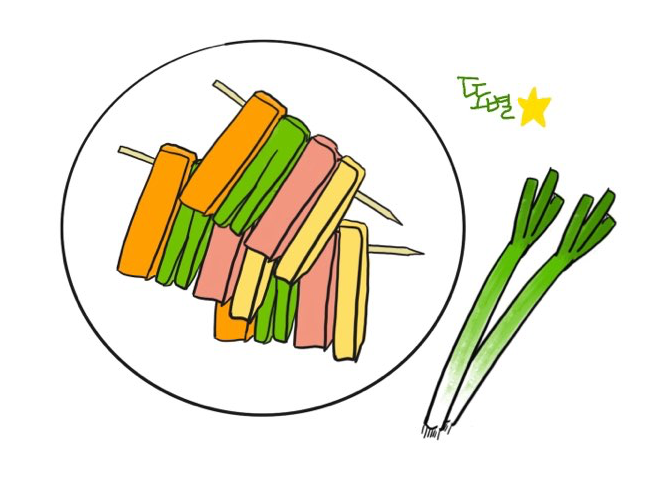 나는 아마 어디론가 여행을 갔던 어느 명절날, 동생과 엄마는 집에서 몇 가지 전과 음식을 만들어서 시골(이라고 하면 할머니는 늘 ‘늬집이 더 시골이다’라고 역정을 내셨지만, 그래도 할머니 계신 곳이 영원히 시골)로 싸들고 내려갔다. 동생이 하루 종일 열심히 꽂은 산적에서 누가 파만 쏙쏙 빼서 이쑤시개와 함께 모아뒀단다.