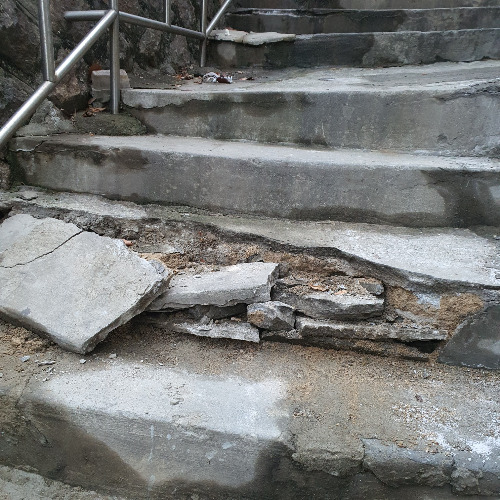 결국 수리되지 못하고 겨울을 맞이한 계단은 저렇게 깨져