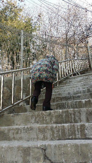 노인이 된 엄마는 이 계단을 오르내리는 동안 말 그대로 꼬부랑 할머니가 되었다.