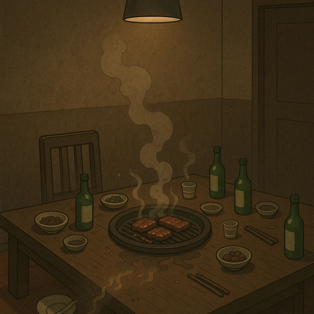 잔 부딪는 소리 뒤에, 민 주임의 눈이 초승달로 휘었다. 맞은편 최 과장의 입술도 따라 올라갔으나 곧 미세하게 뒤틀렸다. 민 주임은 그런 시선을 외면한 채 고기를 뒤집는다.