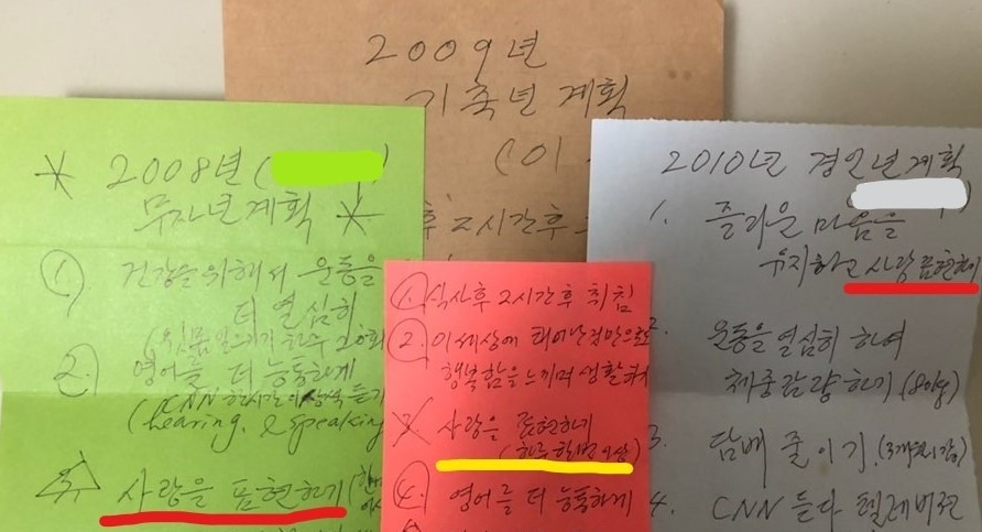 한참 깊은 이야기를 나누다 새해 계획을 세우기 시작하는데, 안타까운 건.. 작년 재작년에도 지키지 못했던 계획들을 올해 또다시 적는 것이다. 나는 주로 다이어트와 영어공부가 늘 항상 지켜지지 않고 반복되는 계획이었다. 하지만 이건 나만 그런 것이 아니었다.