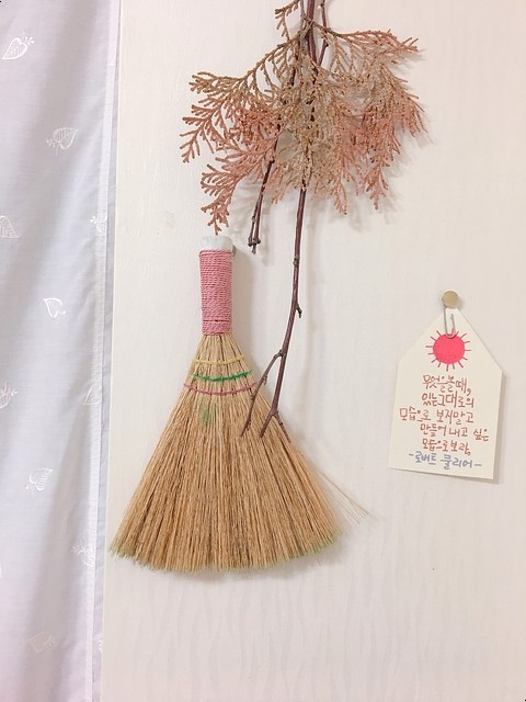 자주 쓰는 책상 빗자루도 책상 옆벽에 걸어주기..