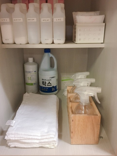 비어있으면 쓰러지기 쉬운 분무기들도 세워지는 통에 자리 만들어주기