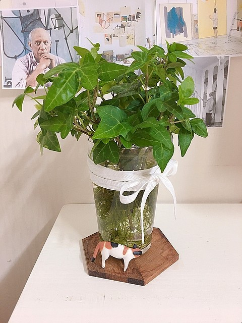 아이비도 받침을 만들어 책상 위에 자리를 내어주고..