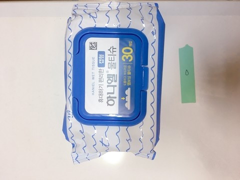 이리저리 굴러다니기 쉬운 물티슈 자리는 종이테이프로 표시.
