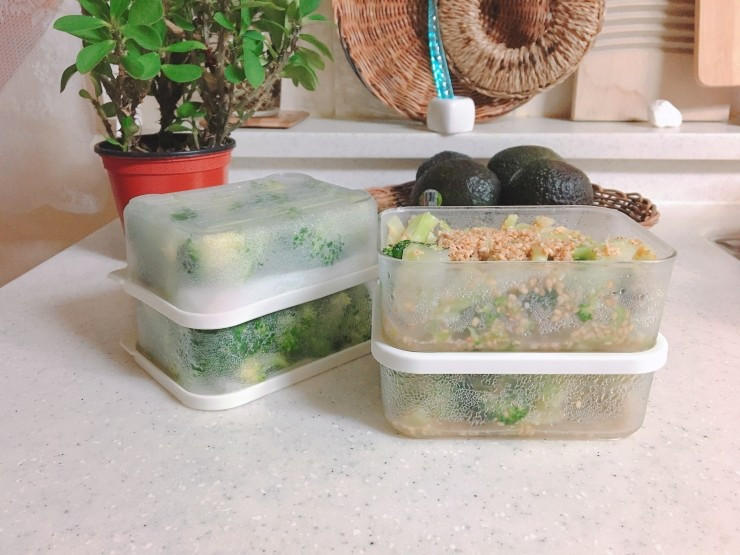소분한 야채는 국에 넣거나 샐러드로 먹고 2~3일 내에 못 먹을 거 같으면 소분 용기 그대로 냉동실로 들어가요.