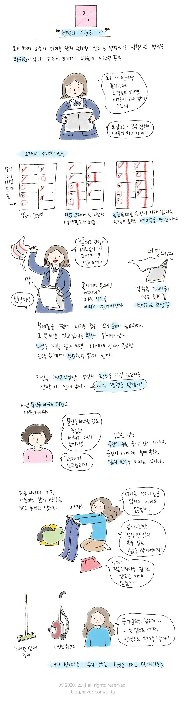 내가 포기하고 버린 삶의 방식들이 아쉽거나 후회되지 않는다.시큰둥하고 미련이 없다.정말 원하는 것을 얻기 위해서는 어떤 삶은 포기하는 것이 필요하다.내가 좋아하는 그림을 그리고 싶은 데로 그리며 사는 삶을 선택함으로써승진과 월급, 경제적 안정과 예측 가능한 삶은 포기할 수밖에 없었지만불안정해도 자유로운 삶을 살기로 마음먹었으니까. 그냥 믿고 즐기며 가는 것이다.