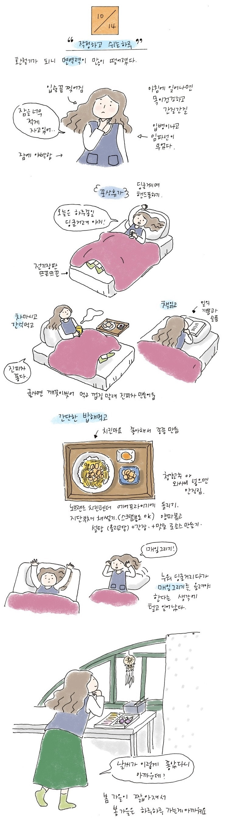 몸이 건강해야 억지가 아닌 진짜 의욕이 나는 거 같다. 아무것도 하기 싫은 날은 아무것도 안 하고 뒹굴거리는 것도 필요하다.