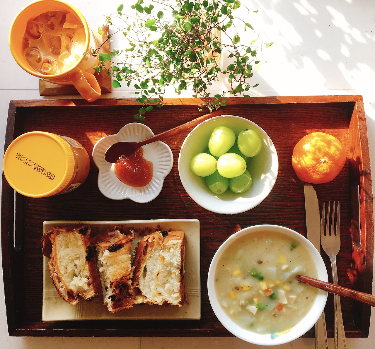아침 탄수화물은 빵을 많이 먹어요.