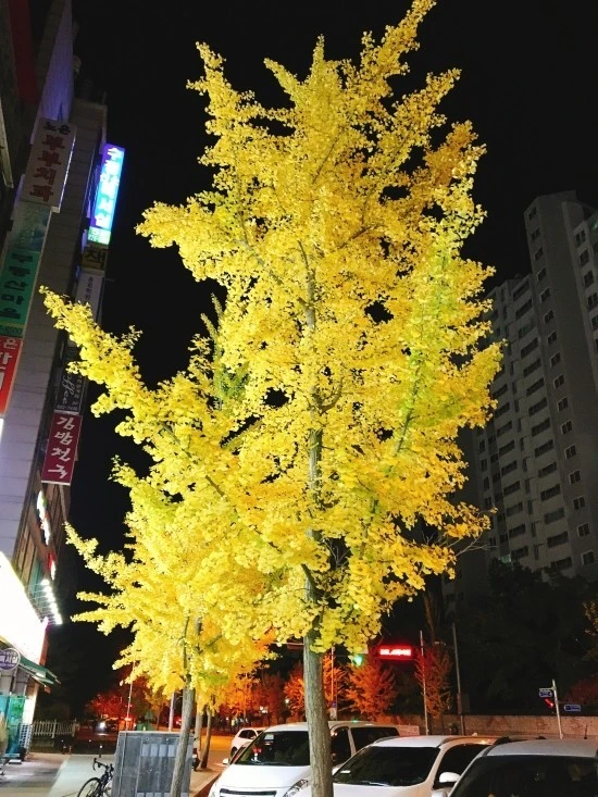 일기그린 10월의 은행나무 완전 꽃나무가 따로 없다.세모모양 잎사귀도 독특해서 좋아.