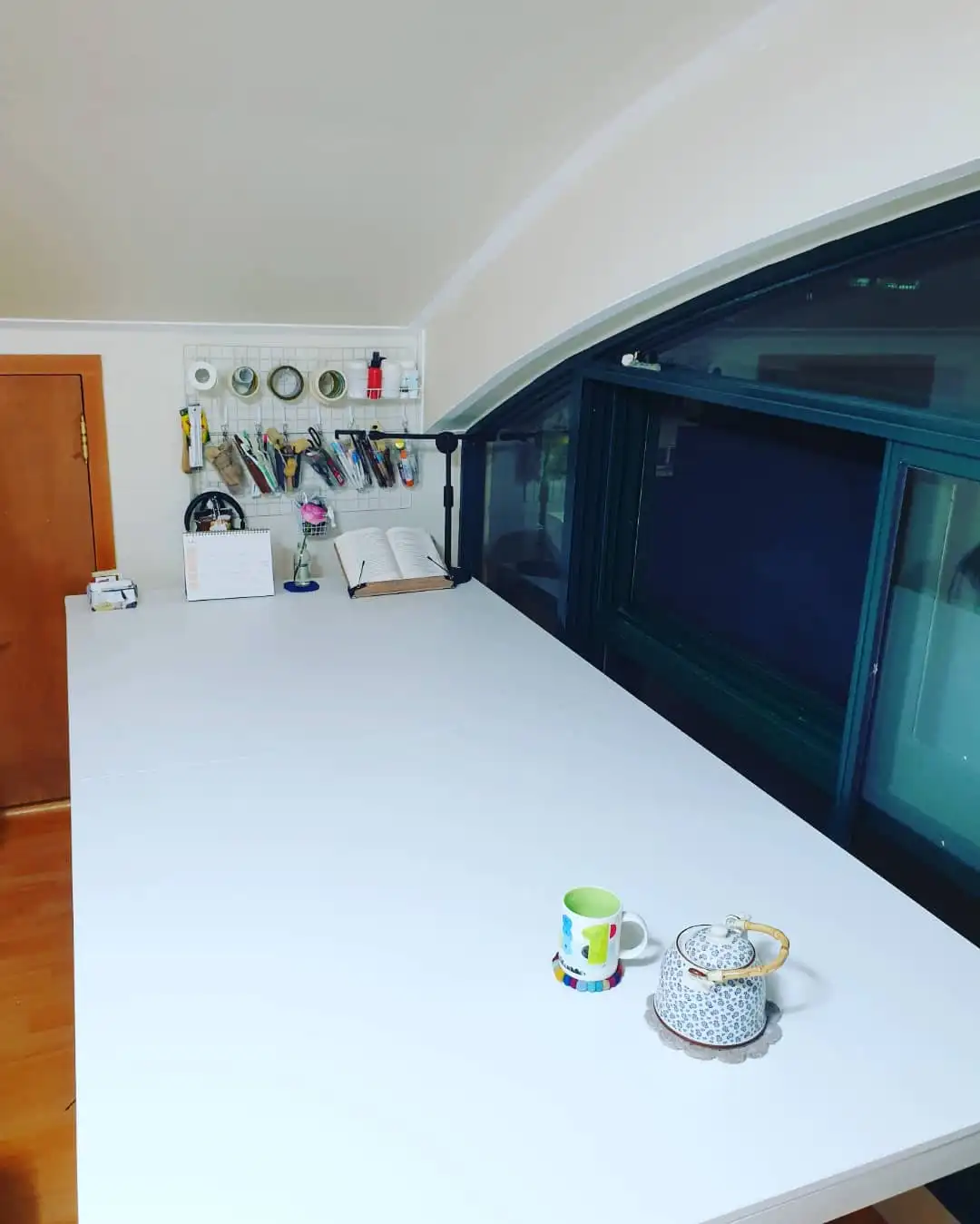 작년 가을에 캘리그래피 작가 버들 글씨의 버들님 작업실에서 이 책상을 보고 너무 마음에 들어서 몇 달 동안 살까 말까 살까 말까 살까 말까를 반복하다가 결국 샀다. 책상이 인터넷 장바구니에서는 오랫동안 머물러 있었지만 결제하는 데는 10초 걸렸다. 사고 나니 배송 오는 걸 기다리는 10일이 길게도 느껴졌다. 지방 배송에는 조립이 포함되지 않아서 어마어마하게 큰 상자를 현관문 앞에서 질질 끌고 들어와 낑낑거리며 혼자 조립해야 했다.
