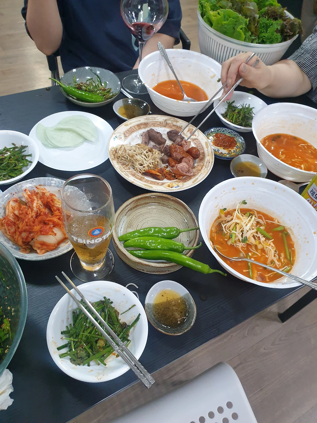 소고기와 맛난 물회를 정성껏 차려두셨다.