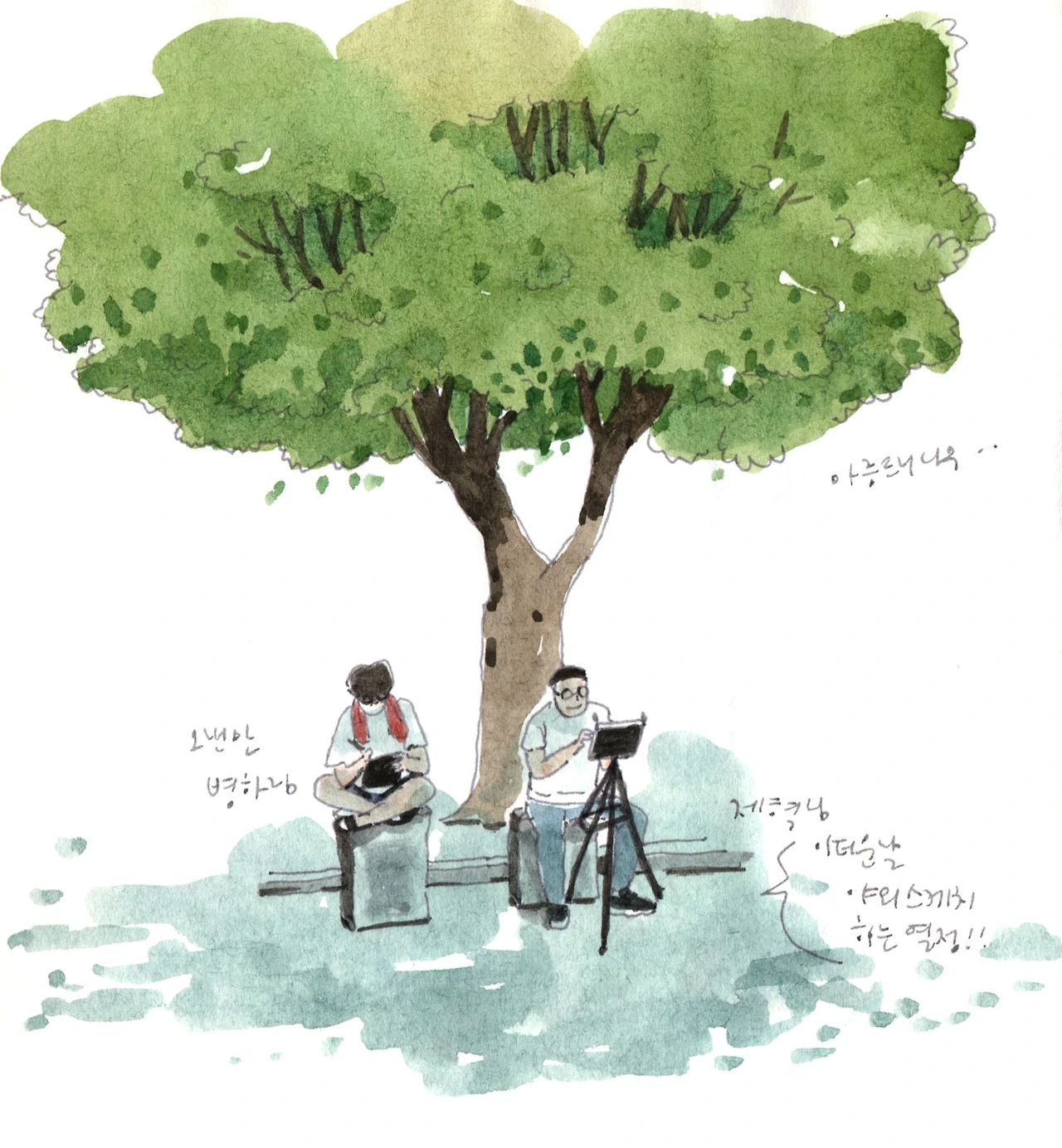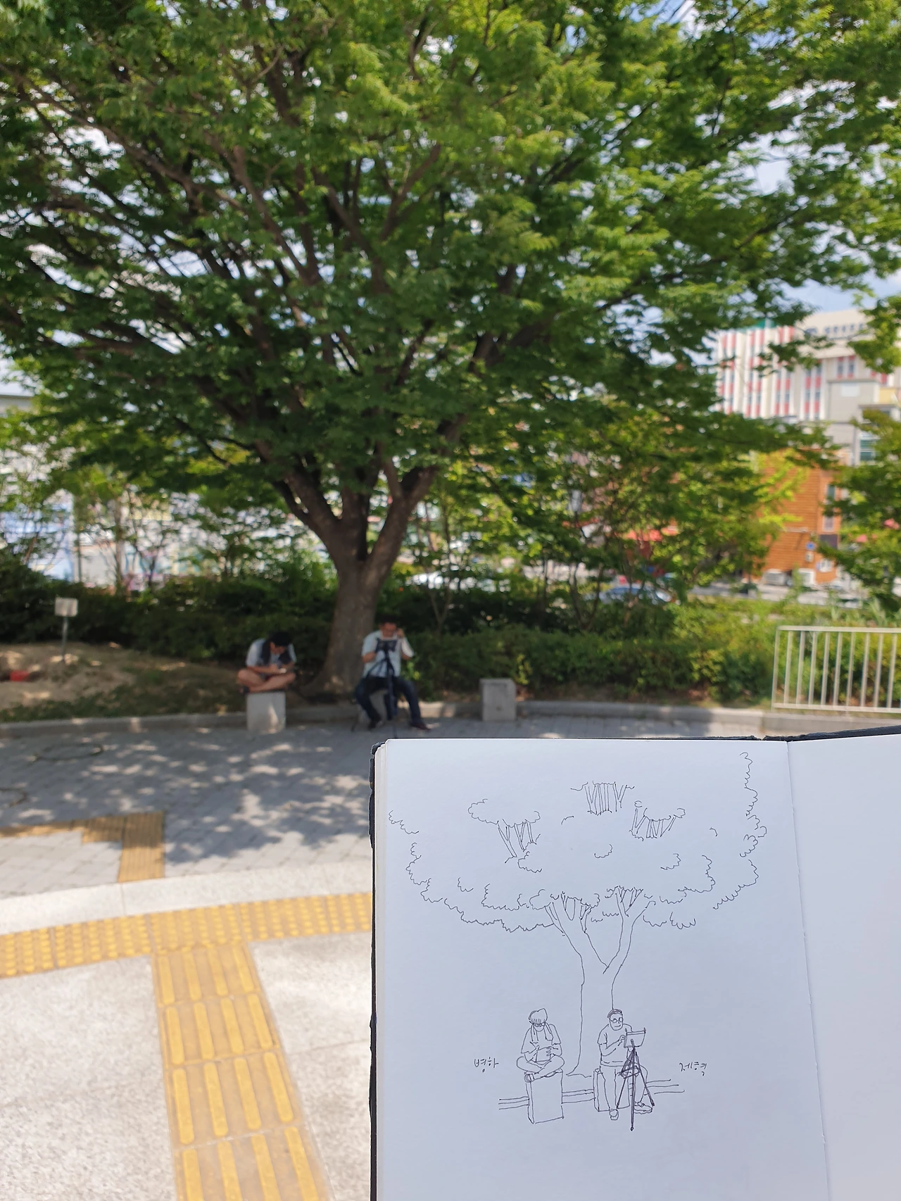 더우니까 가방 가볍게 가져가야지! 하고 생각했을 뿐인데 파렛트도 붓도 펜도 물통도 안 챙기고 드로잉북만 챙겼을 줄이야...