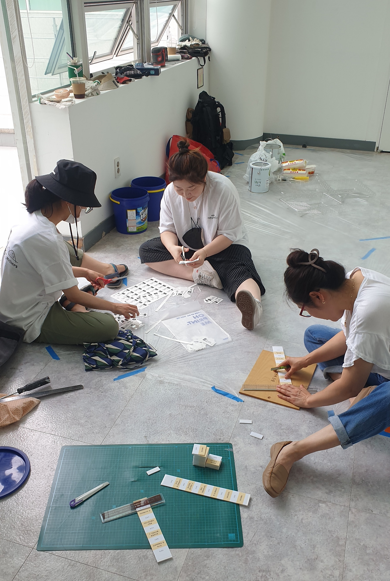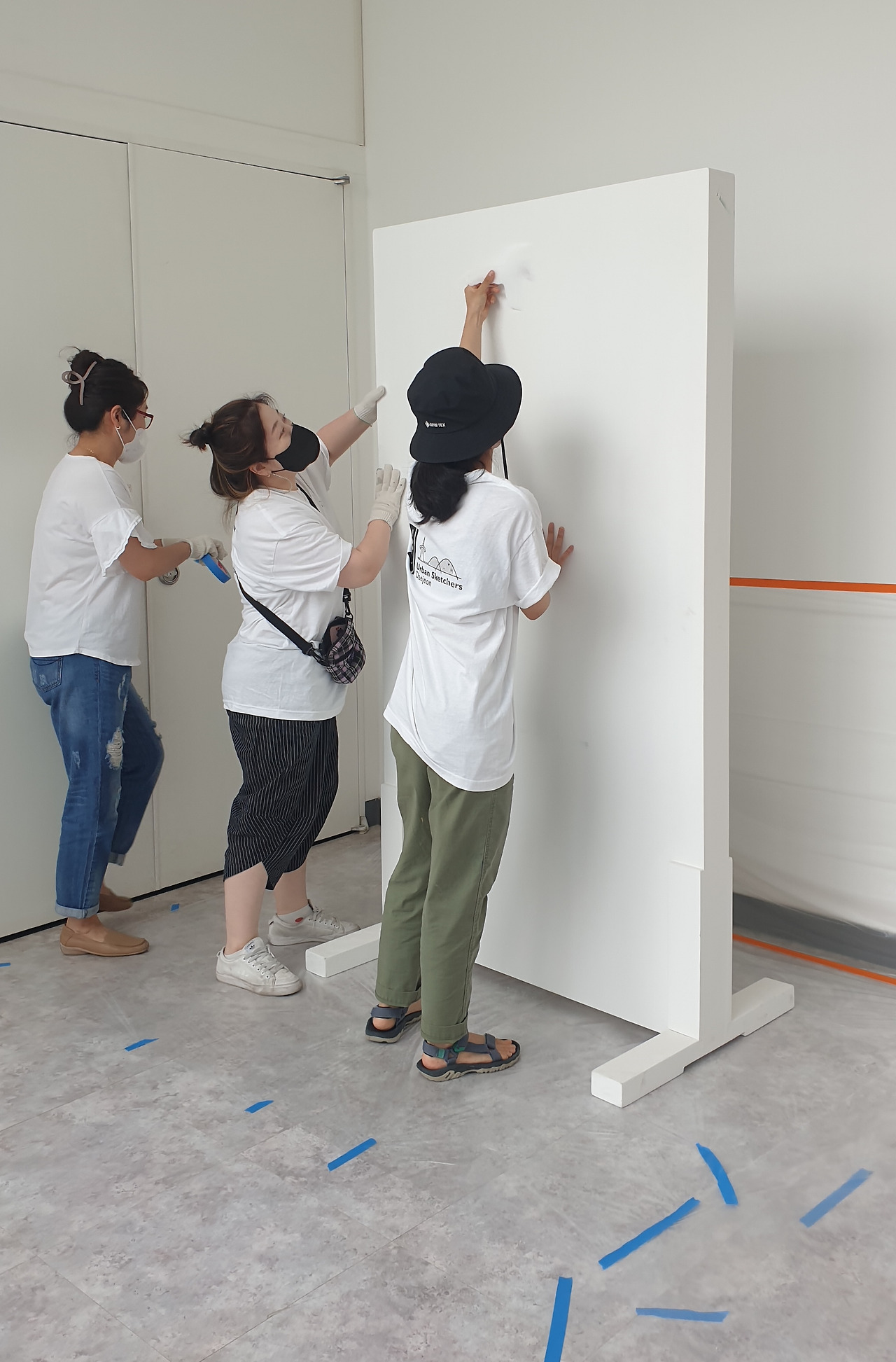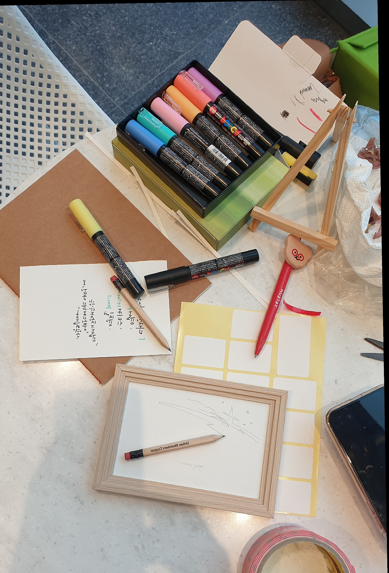 신세계 백화점에 철수하러 왔다. 2달의 길었던 어반 스케쳐스 대전 전시가 끝났다. 스태프들이랑 전시 회의하고 패널 페인트칠하고, 작품 걸고, 엽서 만들고, 전시 기념 워크숍 개최하고.. 많은 일들이 있었다.