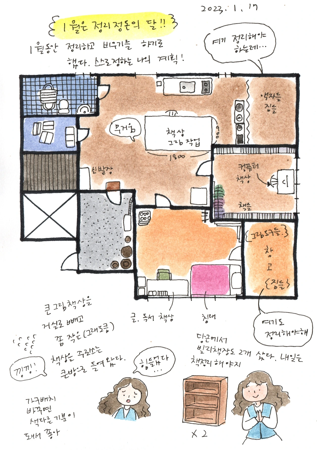 1월 동안 틈틈이 정리정돈을 하기로 했다. 3월부터는 꽤 바빠져서 대대적인 정리는 못할 거 같다. 그래서 1.2월 중에 마음도 공간도 무언가 더 들어올 수 있는 헐렁한 상태로 리셋시키고 싶다.