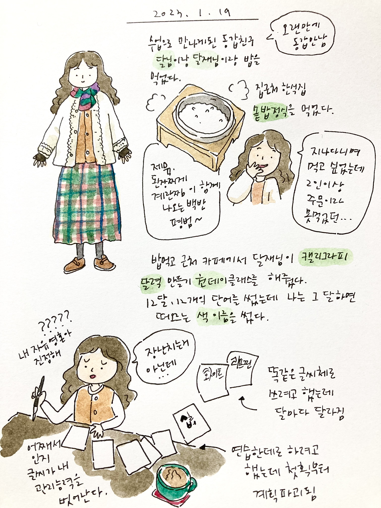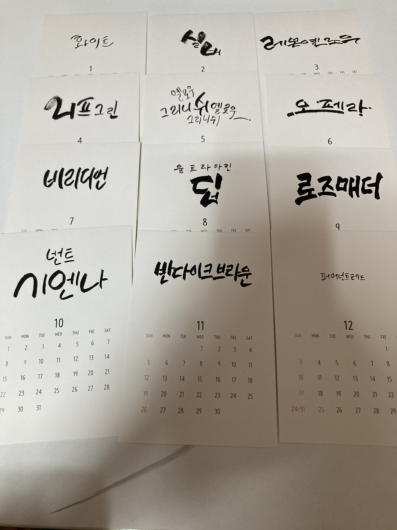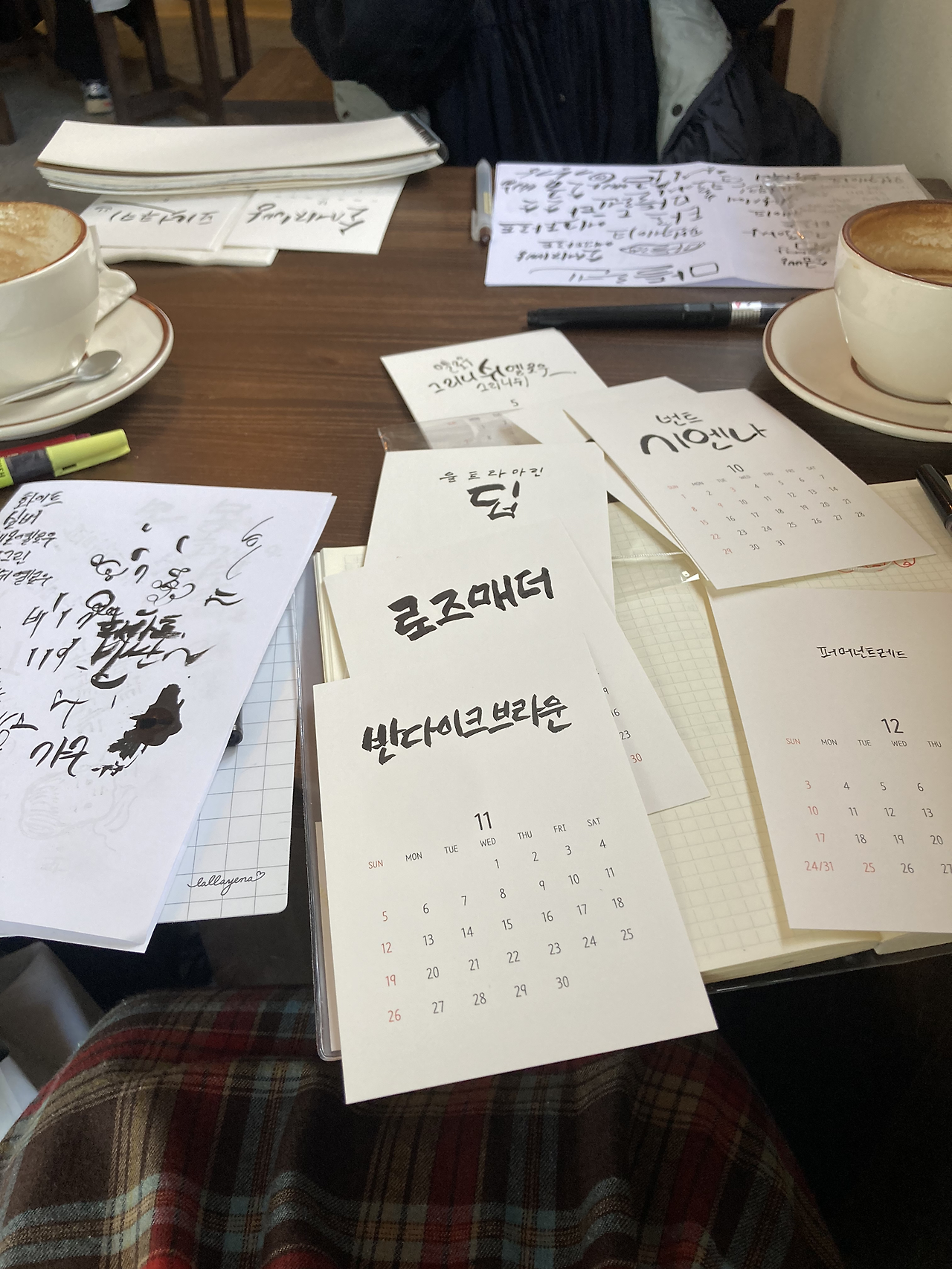 계획을 열심히 세우지만 막상 실행할 때가 되면 즉흥적으로 해버리는 내 성격이랑 비슷하다. 연습종이에 비슷한 글씨체로 연습 많이 했는데 막상 달력에 쓰니 의식의 흐름처럼 어디론가 가고 있다.