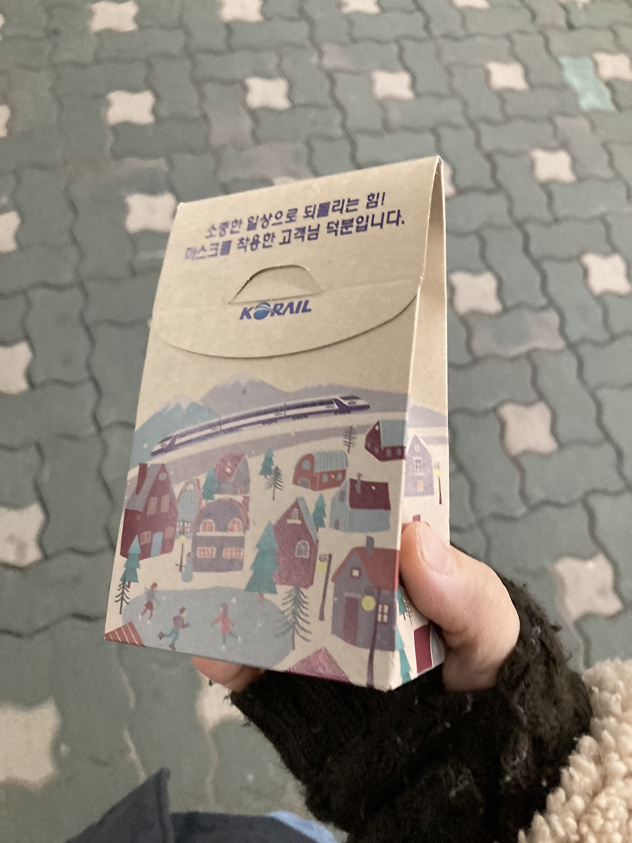 어쩐지 의자가 넓고 좋더라니 내릴 때 보니 특실이었다. 내리는 문쪽에 셀프물품이 있어서 챙겼다. 귀여운걸?