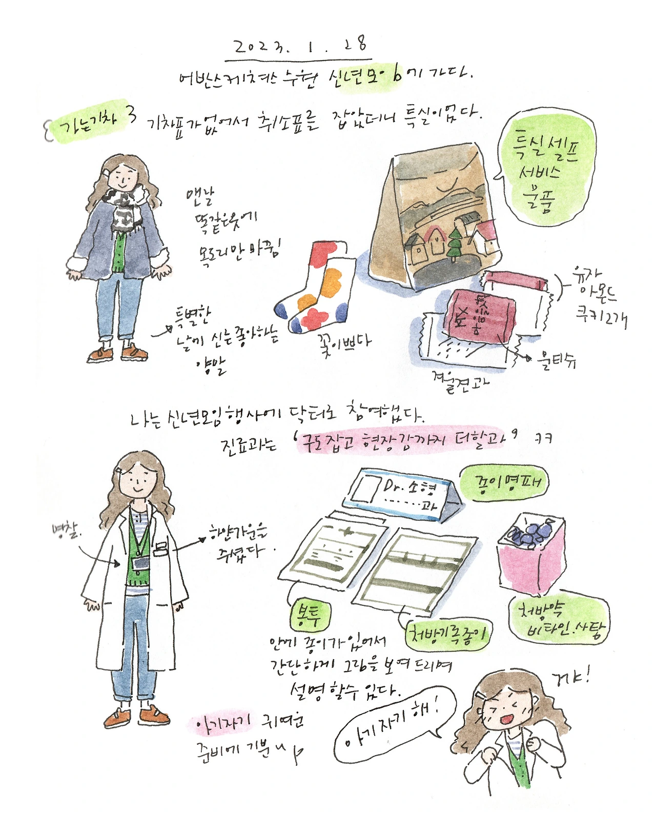 수원이 신년맞이 스페셜 정모를 한다고 나를 어반스케치 클리닉 닥터로 불러주셨다.
