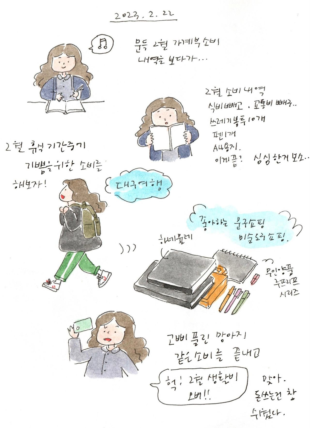언제부턴가 소비를 잘 안 하게 된다. 옷을 종종 사지만 옷도 매일 똑같은 옷 몇 벌을 계속 돌여입다가 비우면서 사는 거고 다시 사는 스타일도 전에 옷과 별 차이가 없다. 그다지 가지고 싶은 게 없다. 가질 수가 없어서 가질 수 없다는 감정을 회피하기 위해 우회하여 가지고 싶지 않다로 변모시켰나 생각해 봤더니 그것도 아니다. 정말 가지고 싶은 게 없다. 가지고 싶은 게 없다는 것은 나에게 변화가 없다는 것과 같은 말이기도 하다. 새 술은 새 부대에 담는다고 내가 변화해서 다른 사람이 되면 나를 둘러싼 것들이 어색하게 느껴지고 변화된 나에 맞게 바꾸고 싶어 진다.