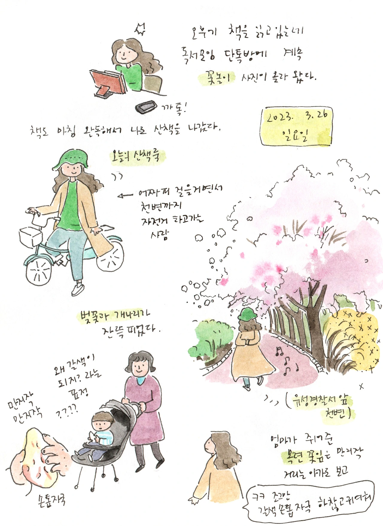 [혼자살기 그림일기] 꽃놀이 산책하기