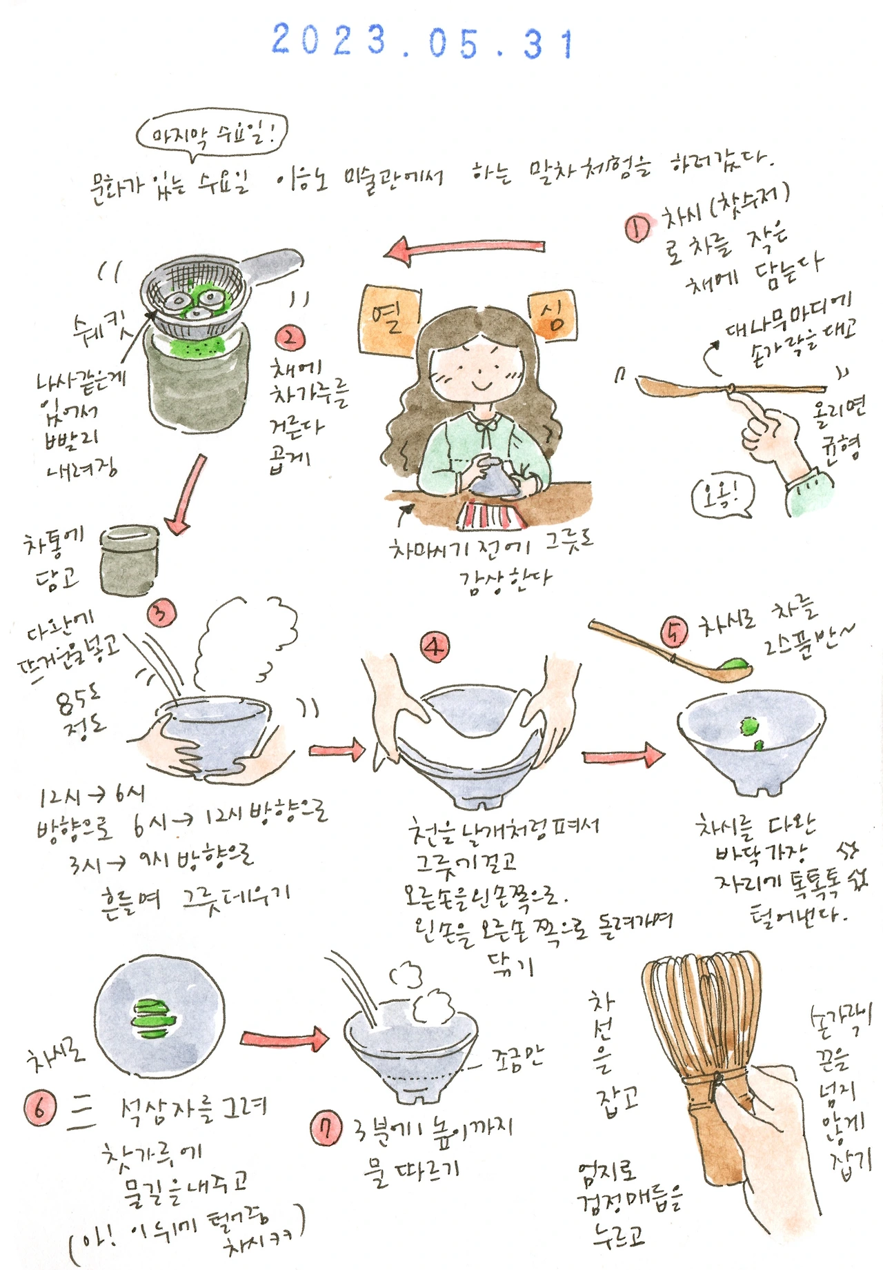 꼭 말차가 아니더라도 비일상으로 들어가는 저녁시간에 나의 현존을 경험하게 하는 작은 약속의 행동들을 세밀하게 만들어 보고 싶다.
