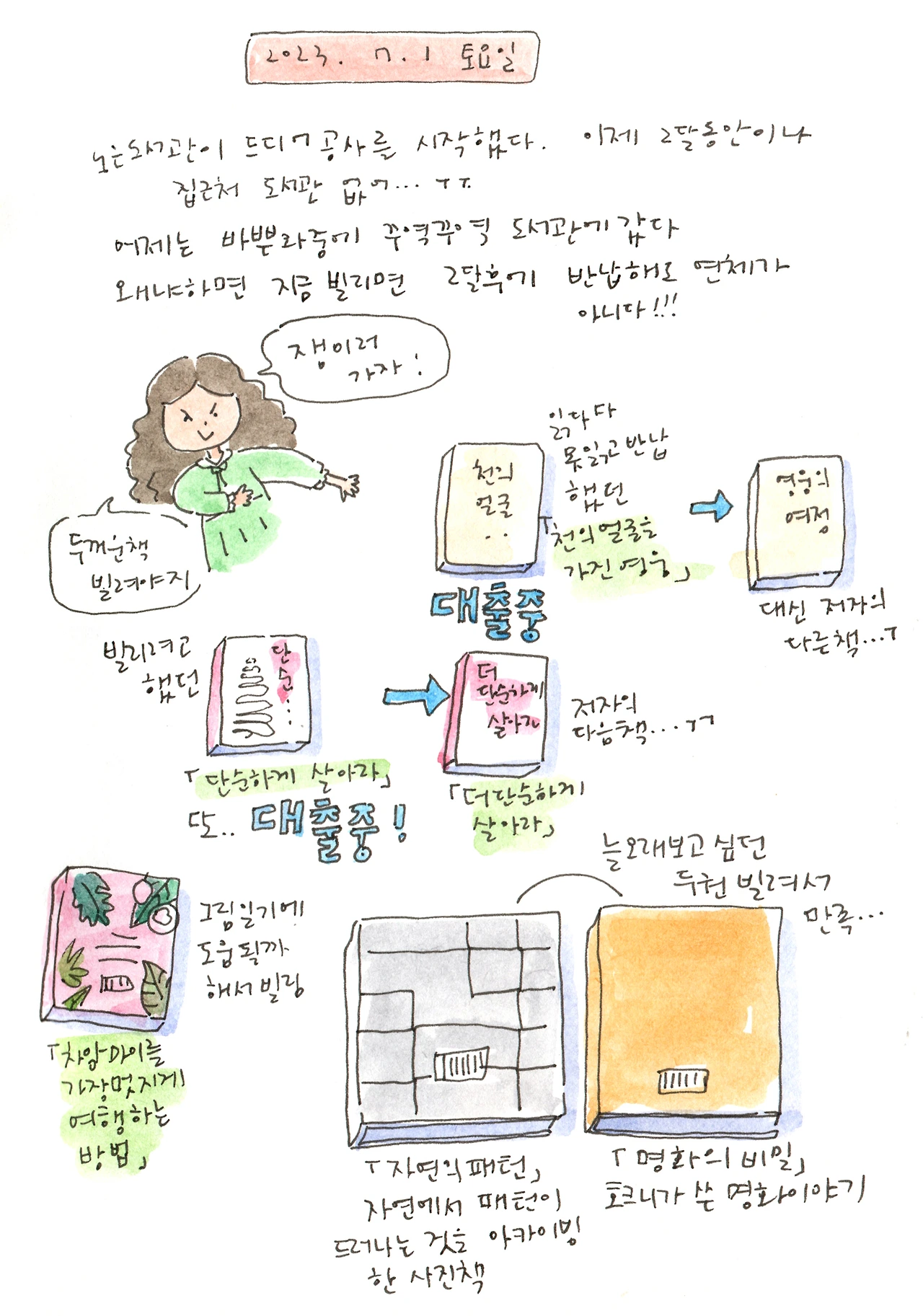 집근처 도서관이 휴관이다.여름은 도서관인데..나의 휴가일정이 무너졌다