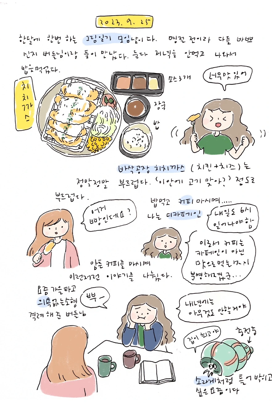 요즘 이리저리 바쁜 중에 자신을 칭찬하고 격려하는 시간을 못 가진 거 같다. 그래서 내 맘이 시무룩 해졌다. 참 예민한 나니까 수시로 돌봐줘야겠다.