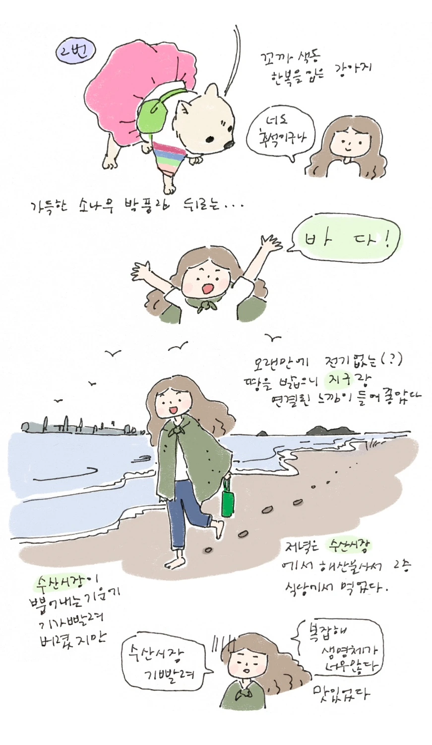 귀여운 개들 덕에 웃었다.