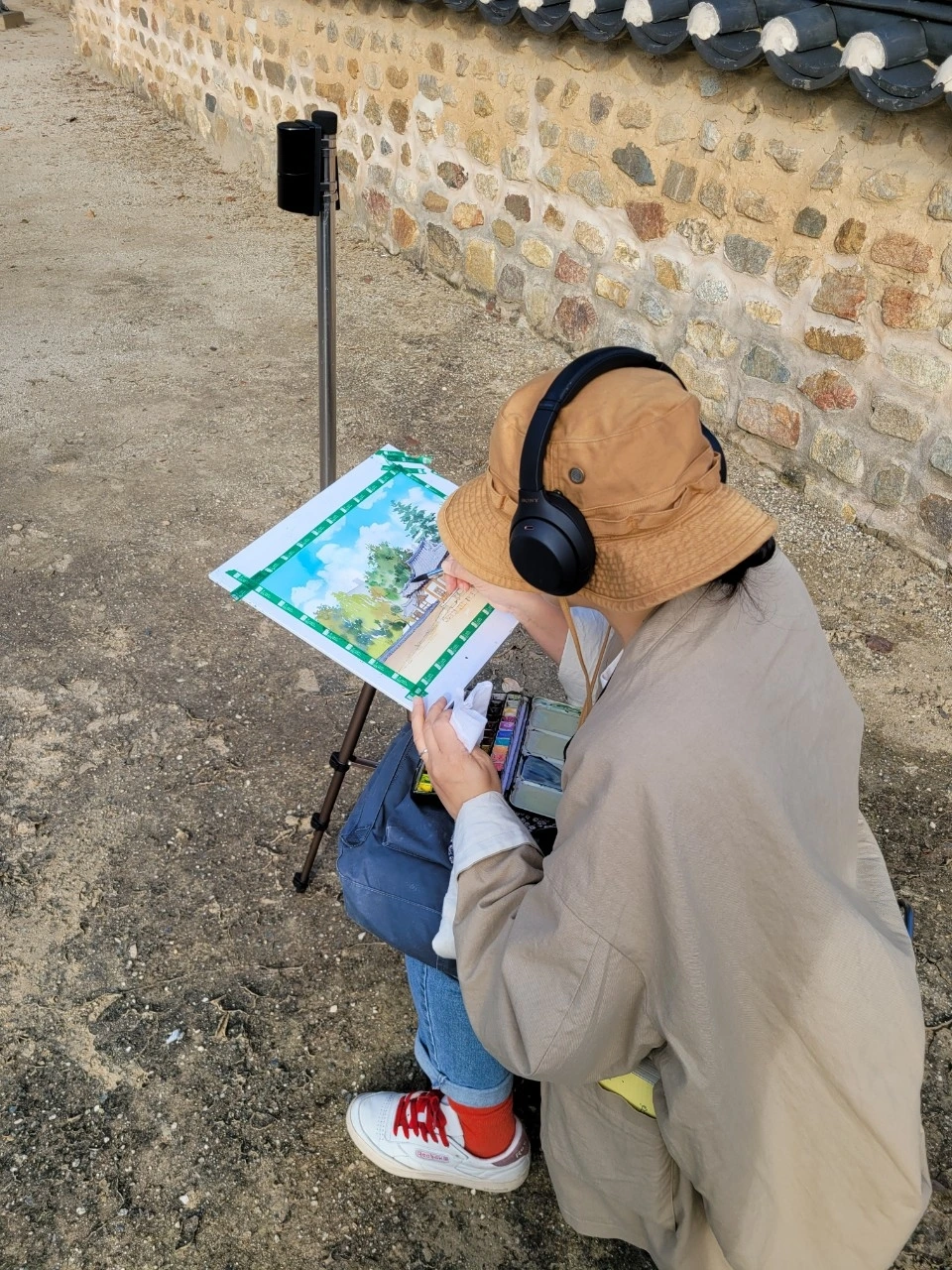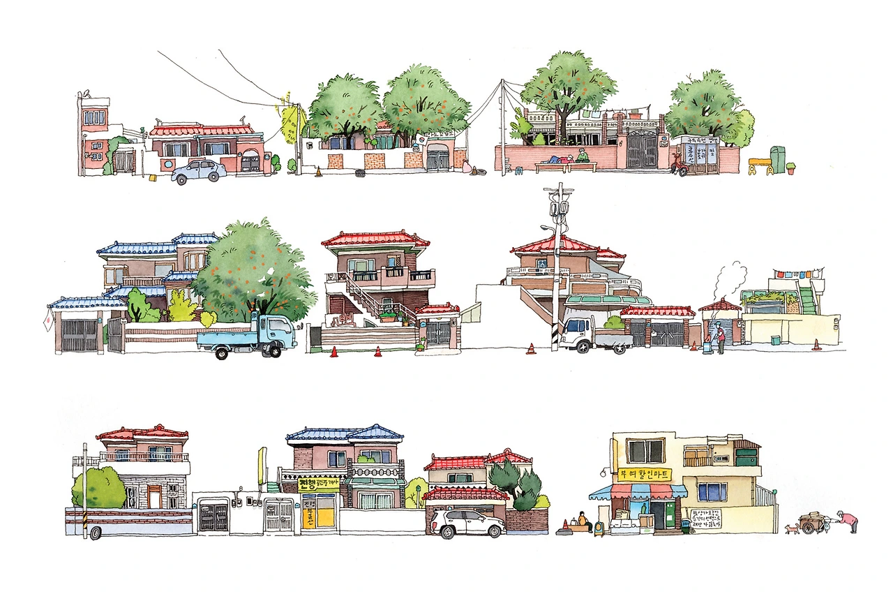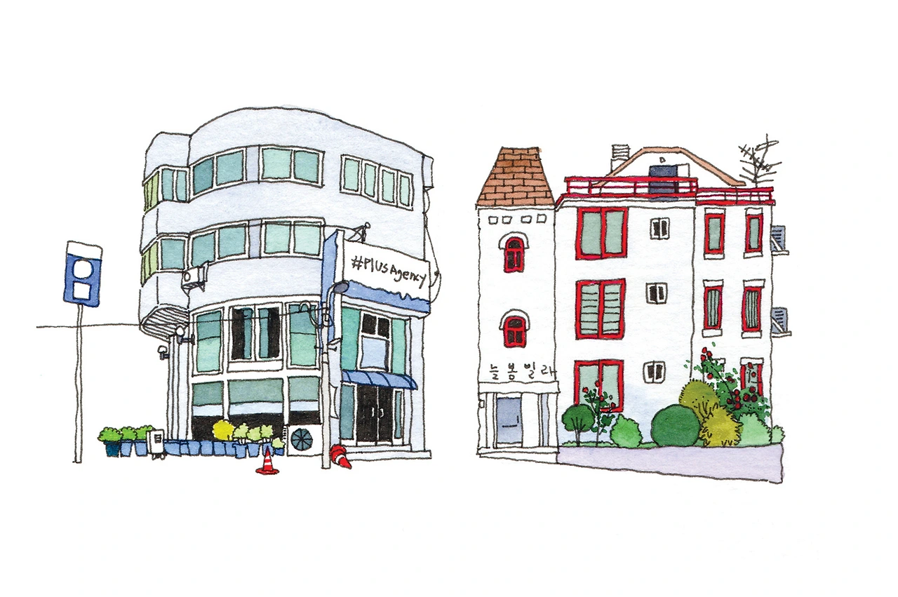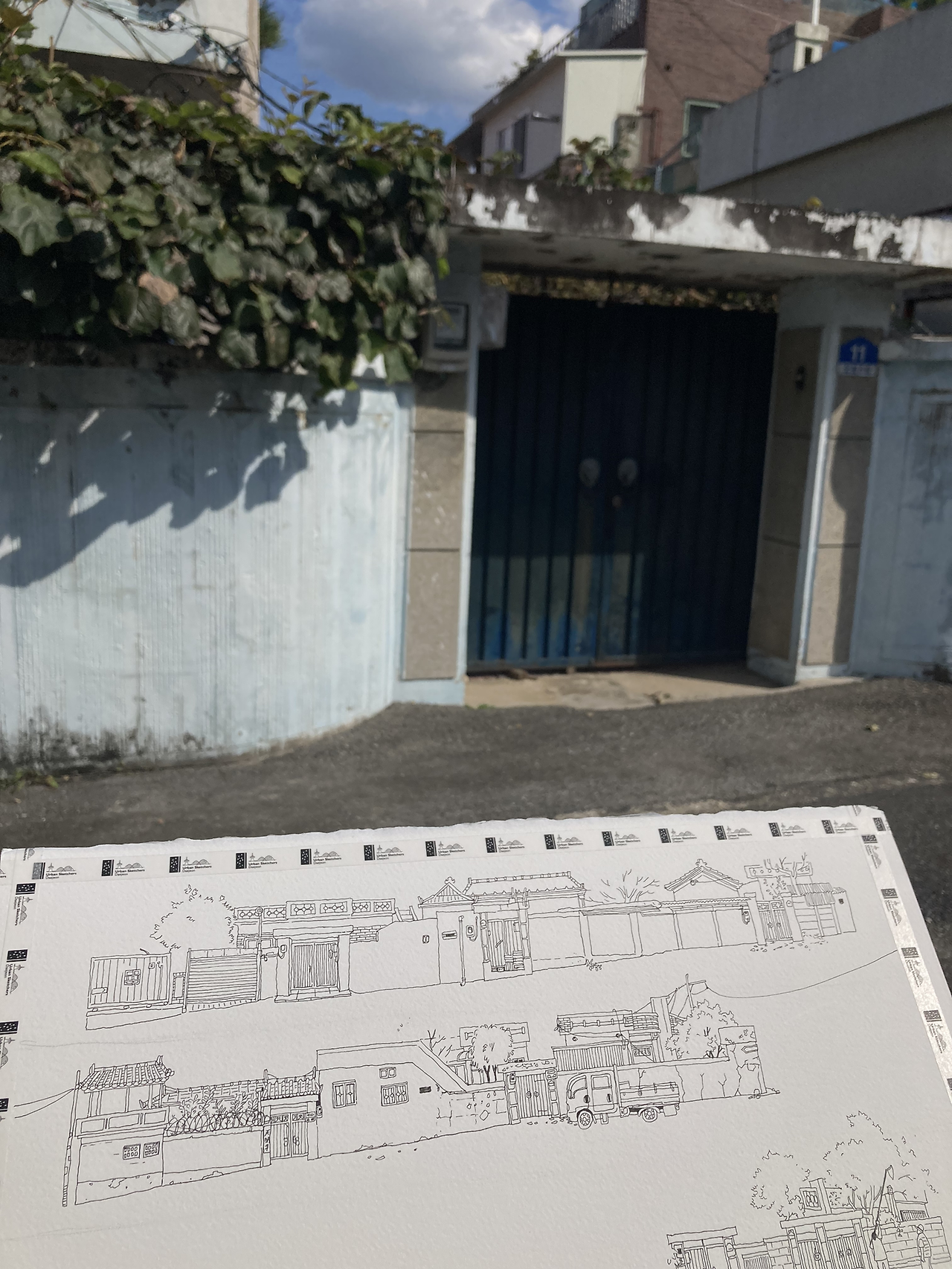 날씨의 버프를 받아 야외스케치의 열정을 불태우고 있다. 귀여운 주택과 빌라들을 수집하듯 기록하는 중이다. 목적은 없다. 그냥 창작욕이 소유욕과 결합하고 오래된 것을 좋아하는 취향의 옷을 입었다.