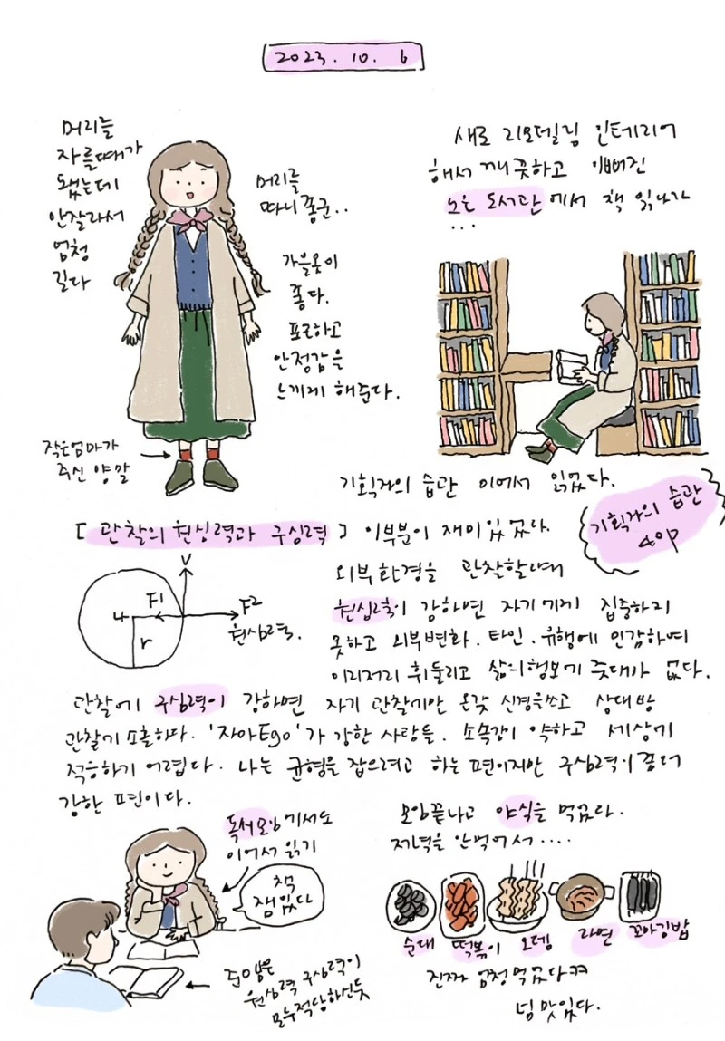 요즘은 구심력을 강조하는 사회 분위기인 거 같다. 자기 자신을 우선시하고 내면과 소통하라. 니 안에 답이 있다. 이런 말이 많이 들려온다. 예전에는 원심력만 강조하던 사회였다. 티브이 광고를 보면 확연하게 드러난다. 이런 분위기에 이리저리 휩쓸리는 것도 구심력이겠지?
