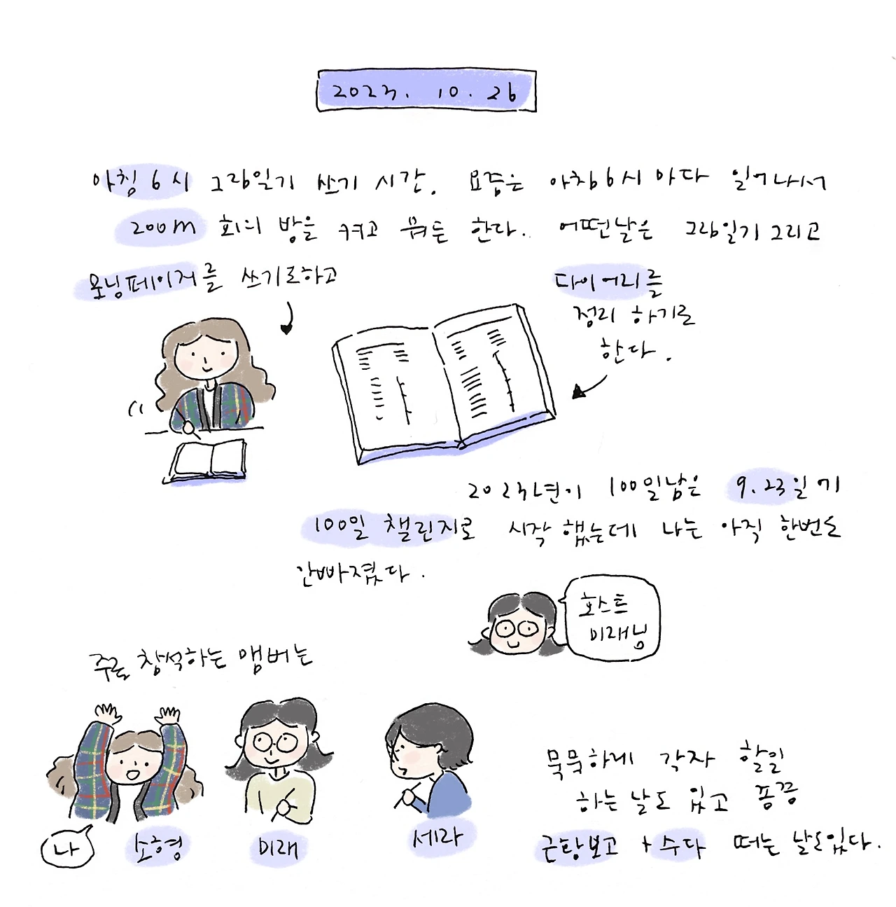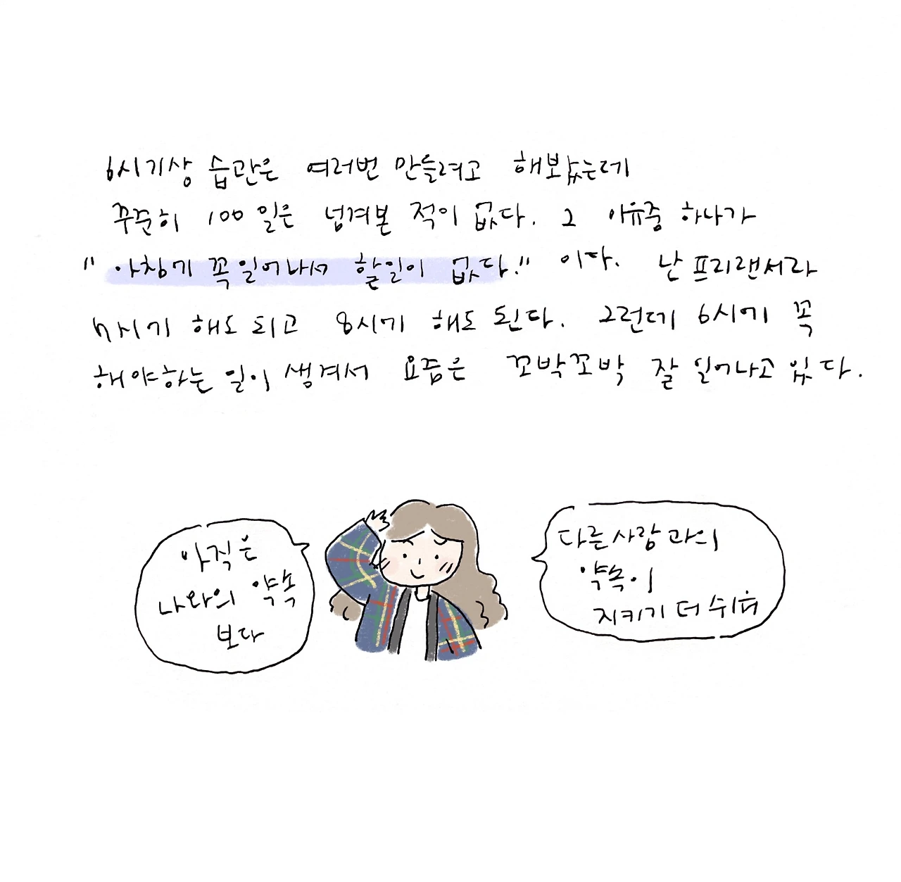 지각한다 뭐라는 사람 없지만 일찍 일어나서 일과를 시작한다.