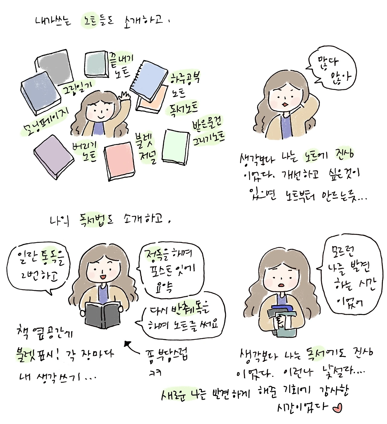 목적 있는 공부는 아니지만 호기심으로 책도 읽고 노트 필기도 한다.