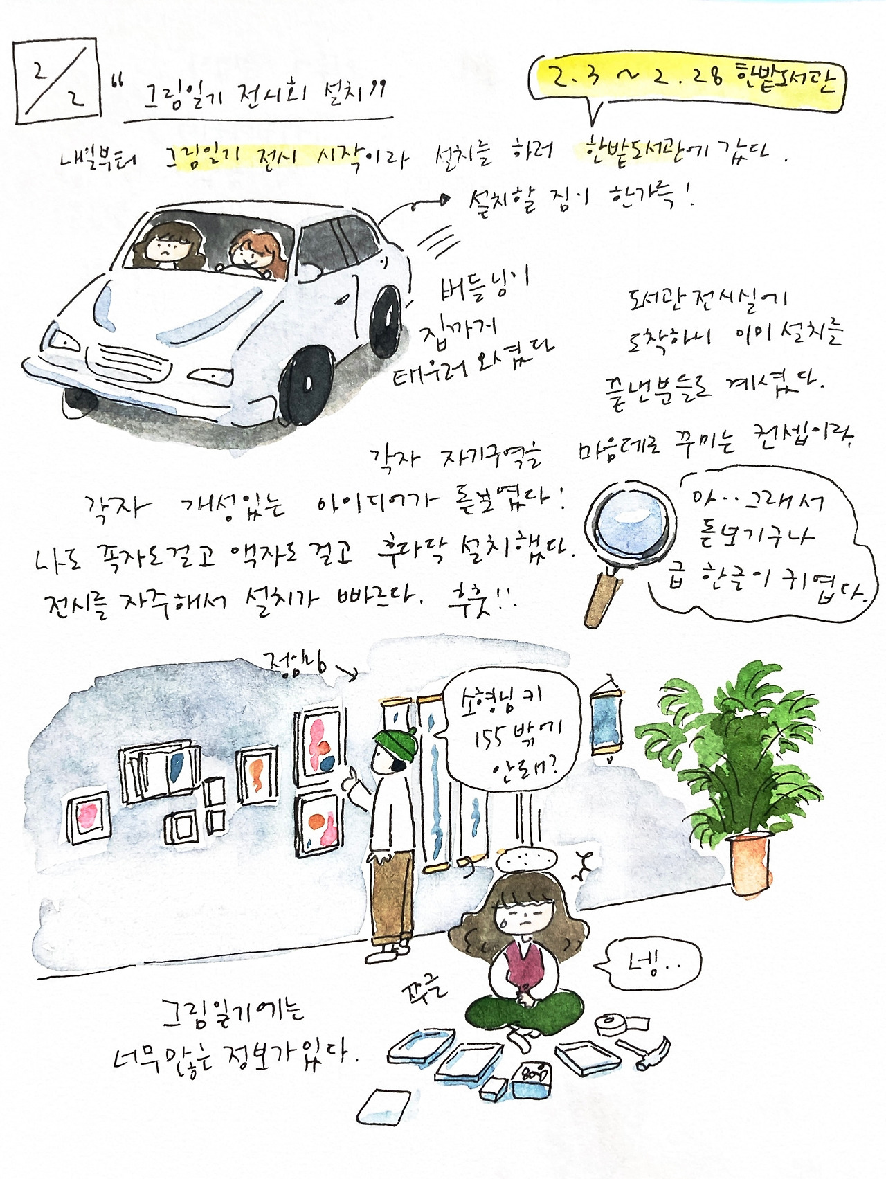 운영하는 그림일기 모임 맴버들과 그림일기 전시를 했다.각자 특색있는 일기들로 꾸몄는데 전시