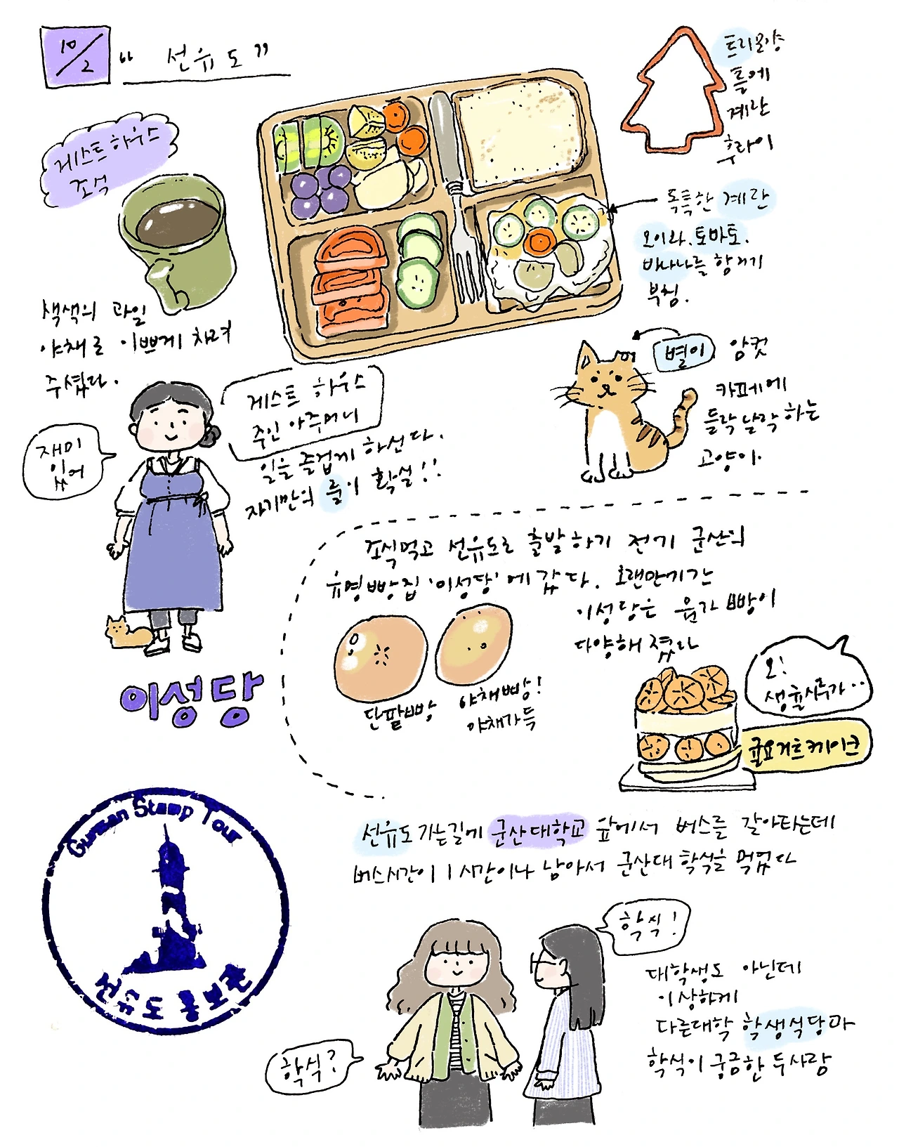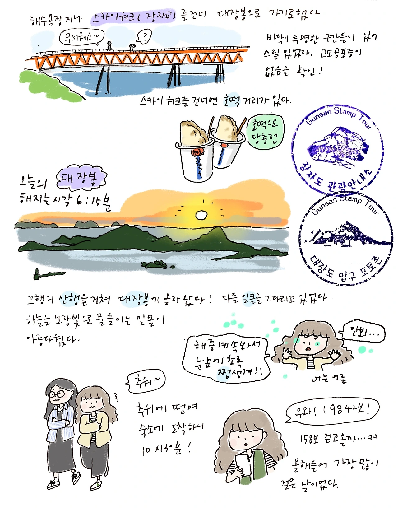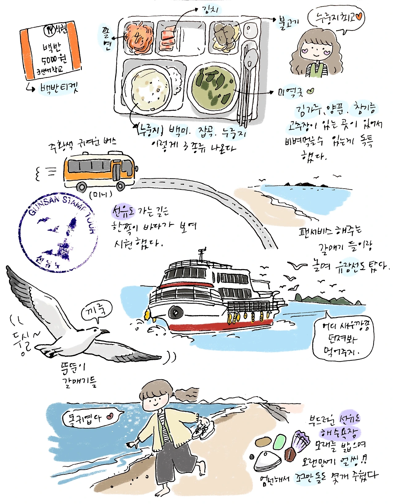 파랑 비닐 의자에 계속 트로트나 옛날 가요를 불러대는 분위기였다. 국내 관광이 유행하던 과거의 한국느낌이었다.