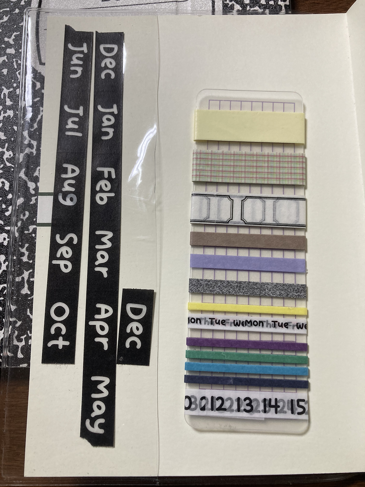 요즘 다이소에 날짜 마스킹 테이프랑 요일, 월 마스킹 테이프가 새로 나와서 다이어리에 잘 쓰고 있다. 점선칼집이 있어서 중간중간 톡톡 끊어진다.